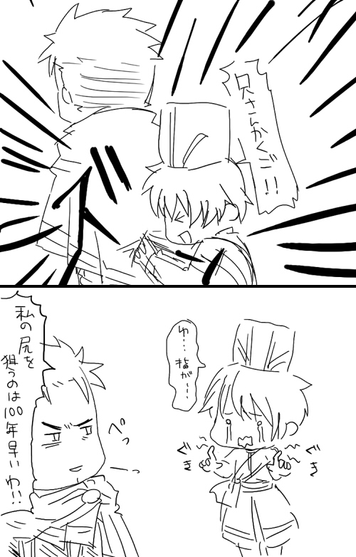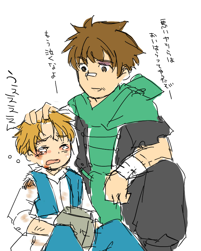 不良兵士に囲まれてた子供助けるとかそんな感じの絵。